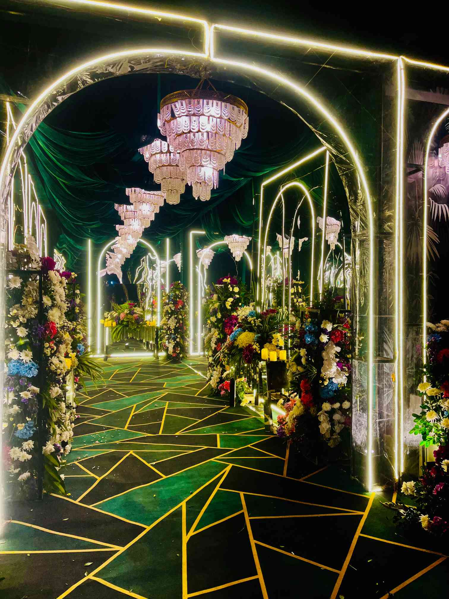 - Bespoke Sangeet Setup with dazzling stage design and immersive lighting, creating an unforgettable musical celebration for Ankur and Kripa.